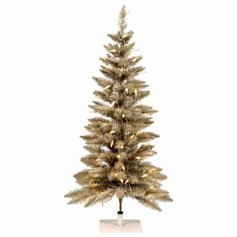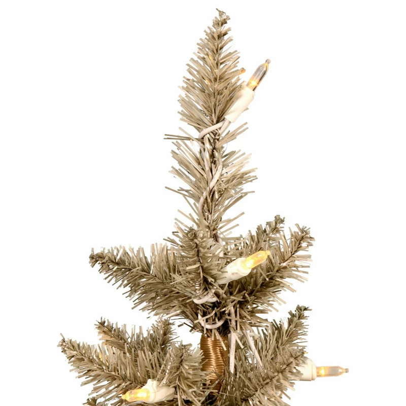 Vickerman Platinum Fir Artificial Christmas Pencil Tree with PVC Tips. This brilliant tree has beautiful Platinum colored PVC tips, stand is included.