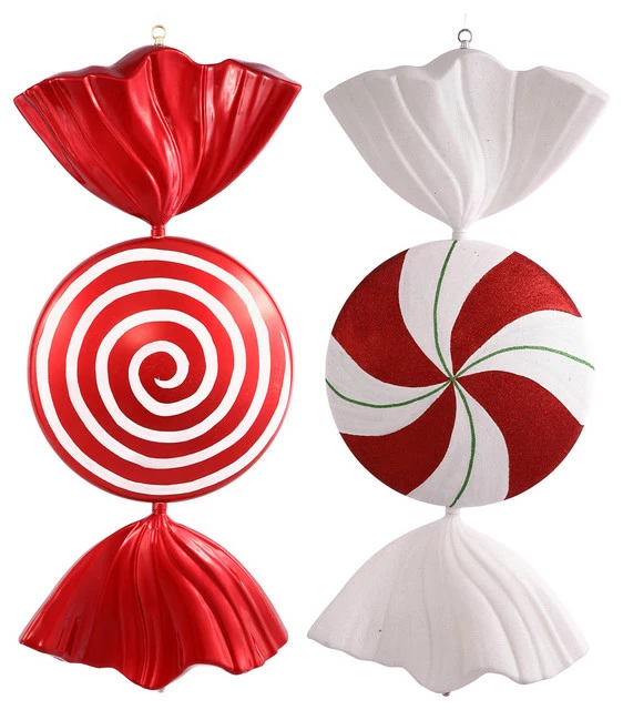 37″ Red-White Peppermint Spiral Shiny Candy Ornament, Shatterproof, Secure Cap
