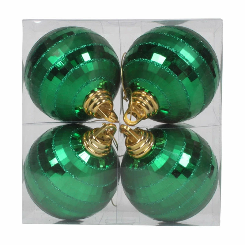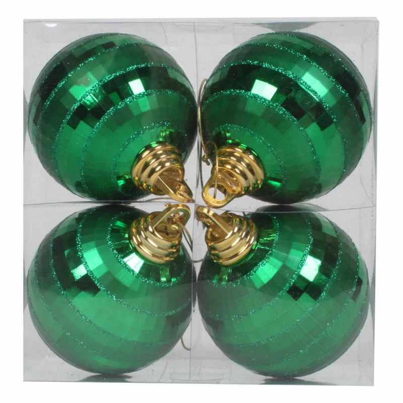 4″ Green Plastic Shiny-Matte Mirror Ball with Matching Glitter 4/Box