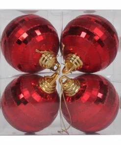 New ⭐ Vickerman Company Vickerman 4″ Matte Mirror Ball, Set Of 4, Red And Green 🛒