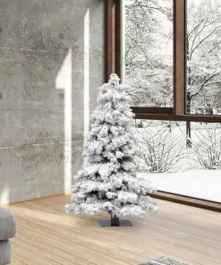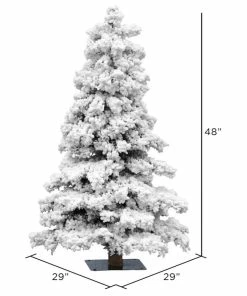 Vickerman 4′ Flocked Spruce Artificial Christmas Tree with 358 PVC Tips. This tree comes unlit, features beautifully flocked tips on metal hinged branches, and a Metal tree stand is included