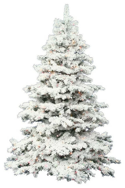 36″ x 24″ flocked Alaskan tree featuring 127 PVC tips and 100 multicolored Italian LED lights.