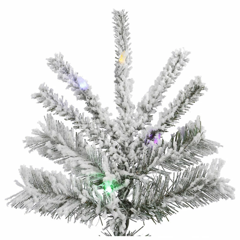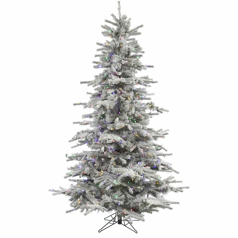 8.5′ x 62″ Flocked Sierra Tree, 1633 PVC Tips and 850 Multi-color Italian LED Lights